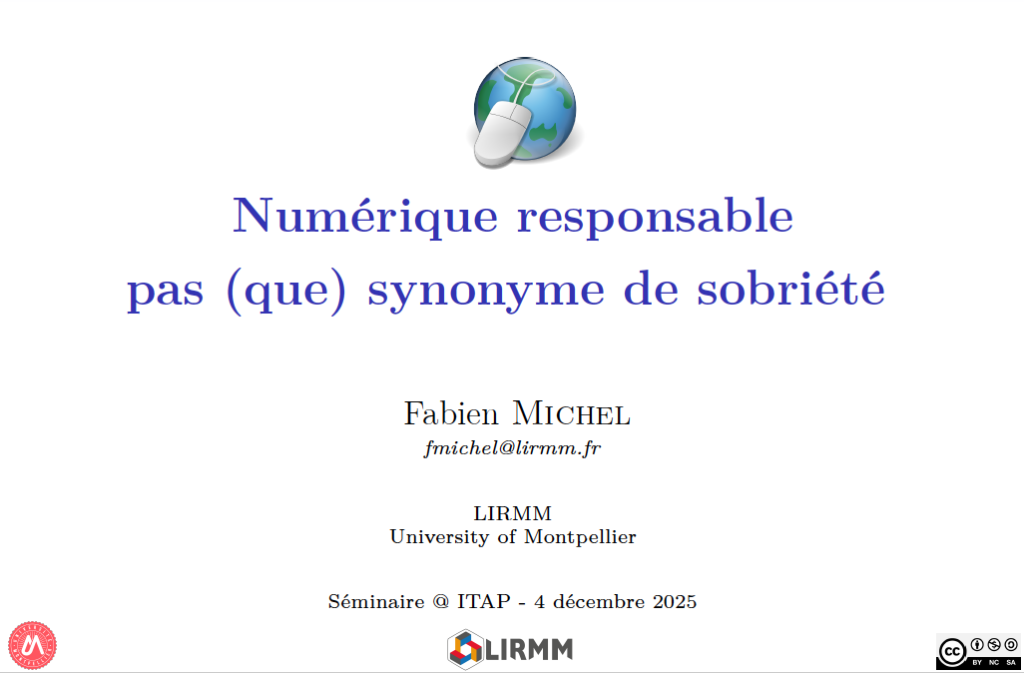 Le numérique, ainsi que la numérisation de nos vies personnelles et professionnelles, représentent pour nos sociétés une véritable révolution, en action depuis déjà plusieurs années. Cette évolution,permise par les nouvelles technologies qui fleurissent (IA, 5G, IoT, applications mobiles, etc.), est souvent considérée comme l’un des moyens de réduire nos émissions carbone : moins de paperasses, moins de voyages, etc. Nos modes de vie, en étant de plus en plus ancrés dans le virtuel, seraient donc moins polluants. Cette intuition est aujourd’hui partiellement contredite par les faits. Dans cet exposé, nous montrons que le numérique possède une empreinte importante, ne serait-ce que par l’électricité et les matières premières requises par les outils qui le composent. En fait, le rythme de croissance de ce domaine est tout