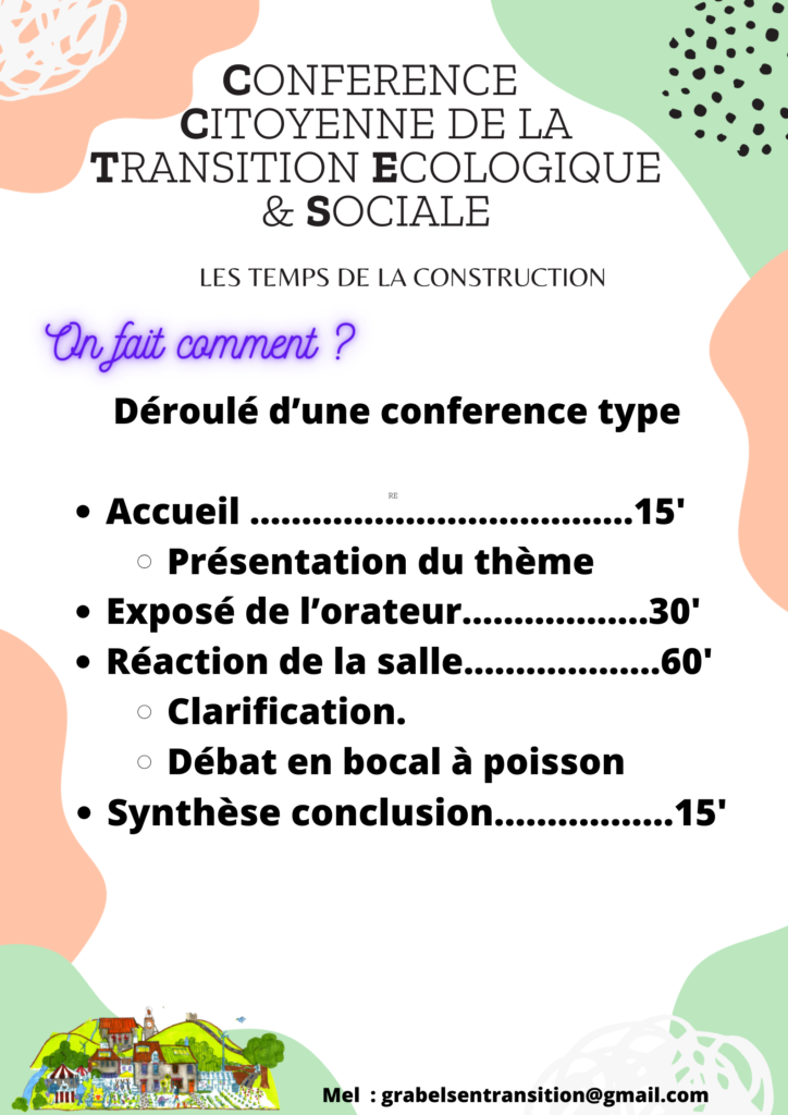 Les conférences ont cette ambition d’initier sur la commune l’apprentissage du débat et de la construction collective de solutions adaptée à notre territoire, répondant à des besoins ou attente partagées et surtout à notre portée de réalisation.